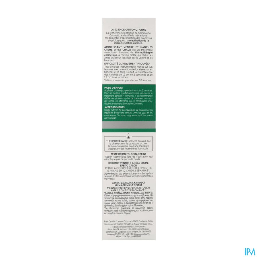 Innovatieve afslankbehandeling geïnspireerd op cosmetische cryotherapie, bedoeld om vetophopingen op de buik en de heupen te verminderen en de elasticiteit van de huid te verbeteren voor een 'liftend effect'. Aangename crèmetextuur met thermo-actief effect.