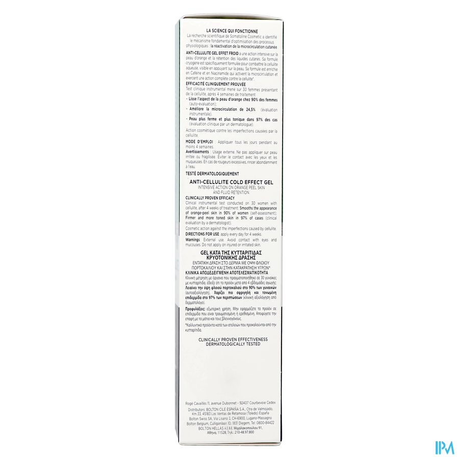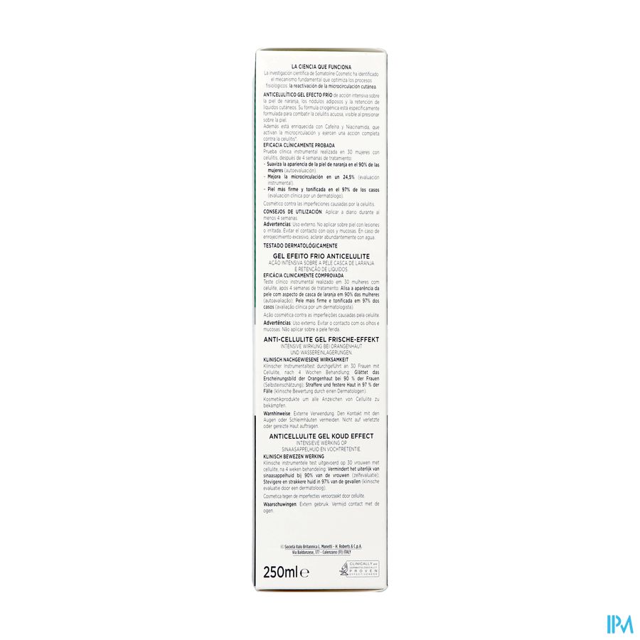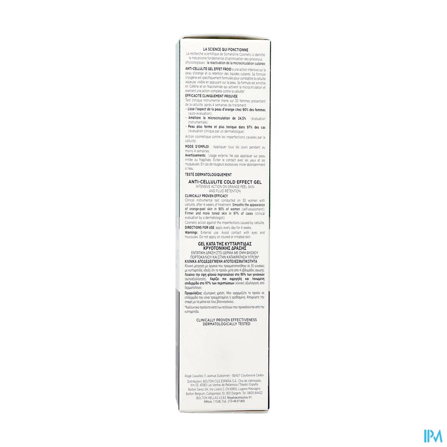 Een gel met een verfrissend effect, speciaal ontwikkeld om watercellulitis aan te pakken en vochtophoping te verminderen. De cryogene formule stimuleert de microcirculatie, waardoor sinaasappelhuid en cellulitis zichtbaar verminderen.